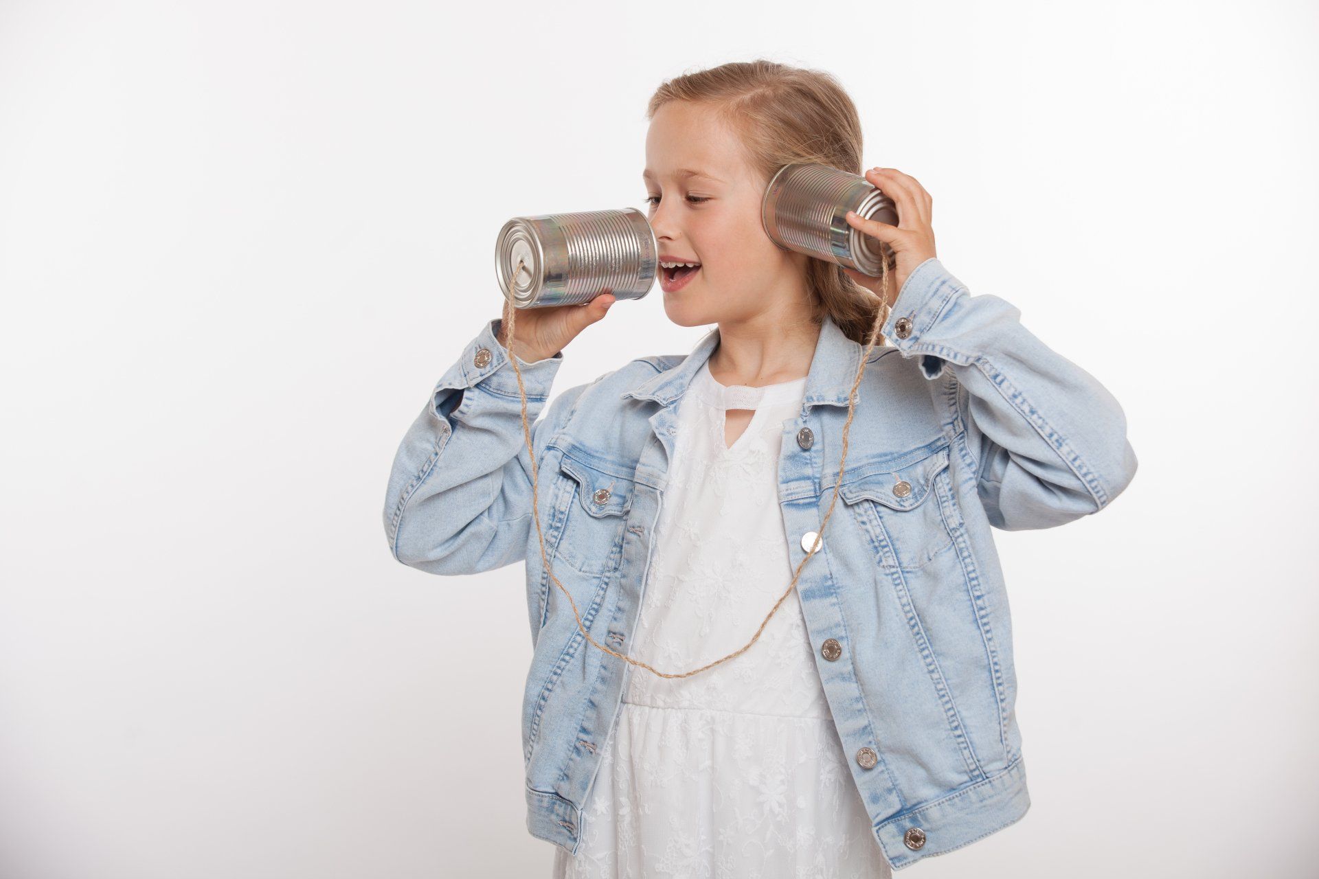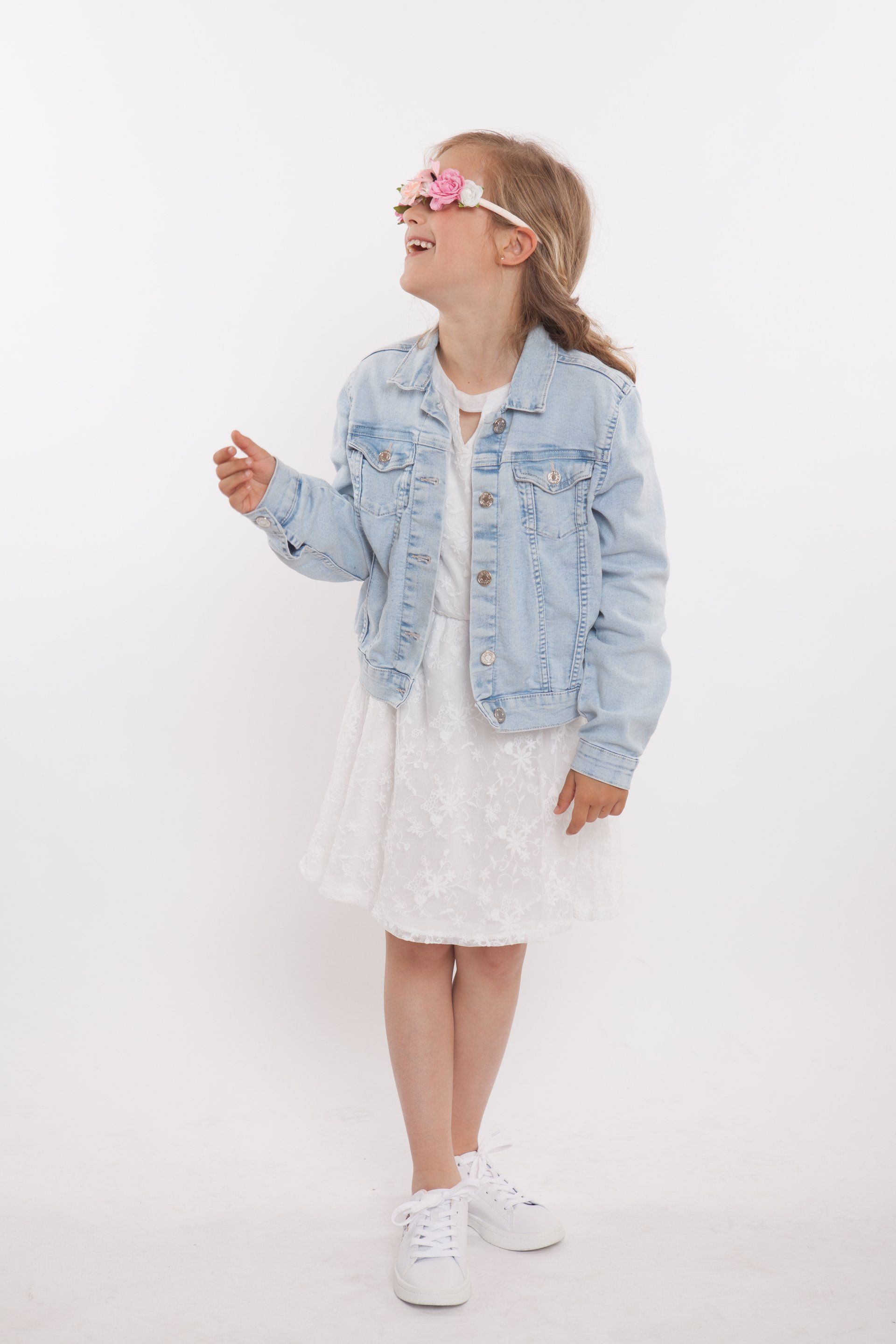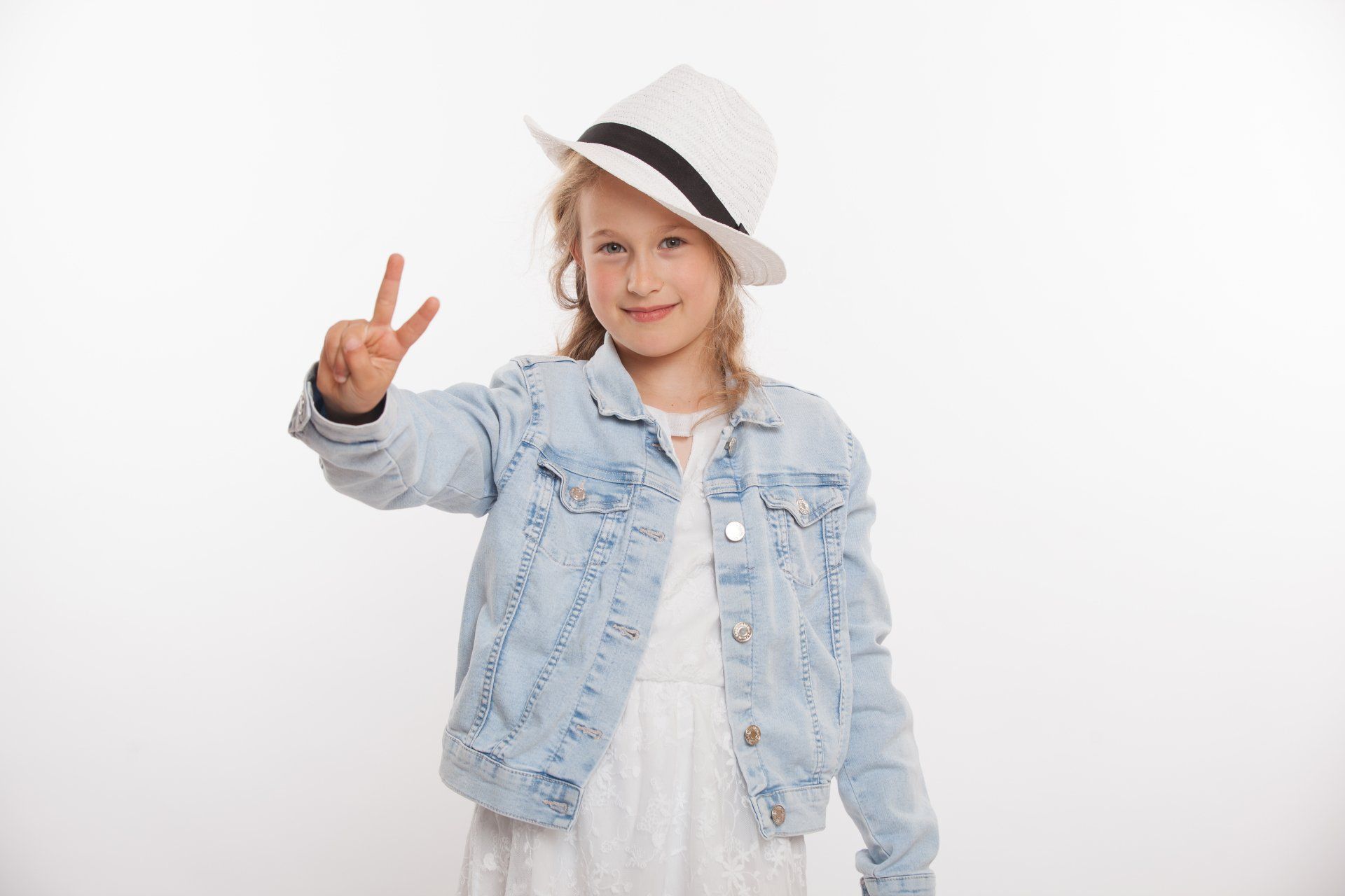 In einem modernen und schlichten Set werden die Kinder in Szene gesetzt. Mit passenden Requisiten und Accessoires, die auf das Set in den modernen Farben weiß, grau und leuchtendem blau abgestimmt sind, entsteht ein harmonischer und fröhlicher Look.